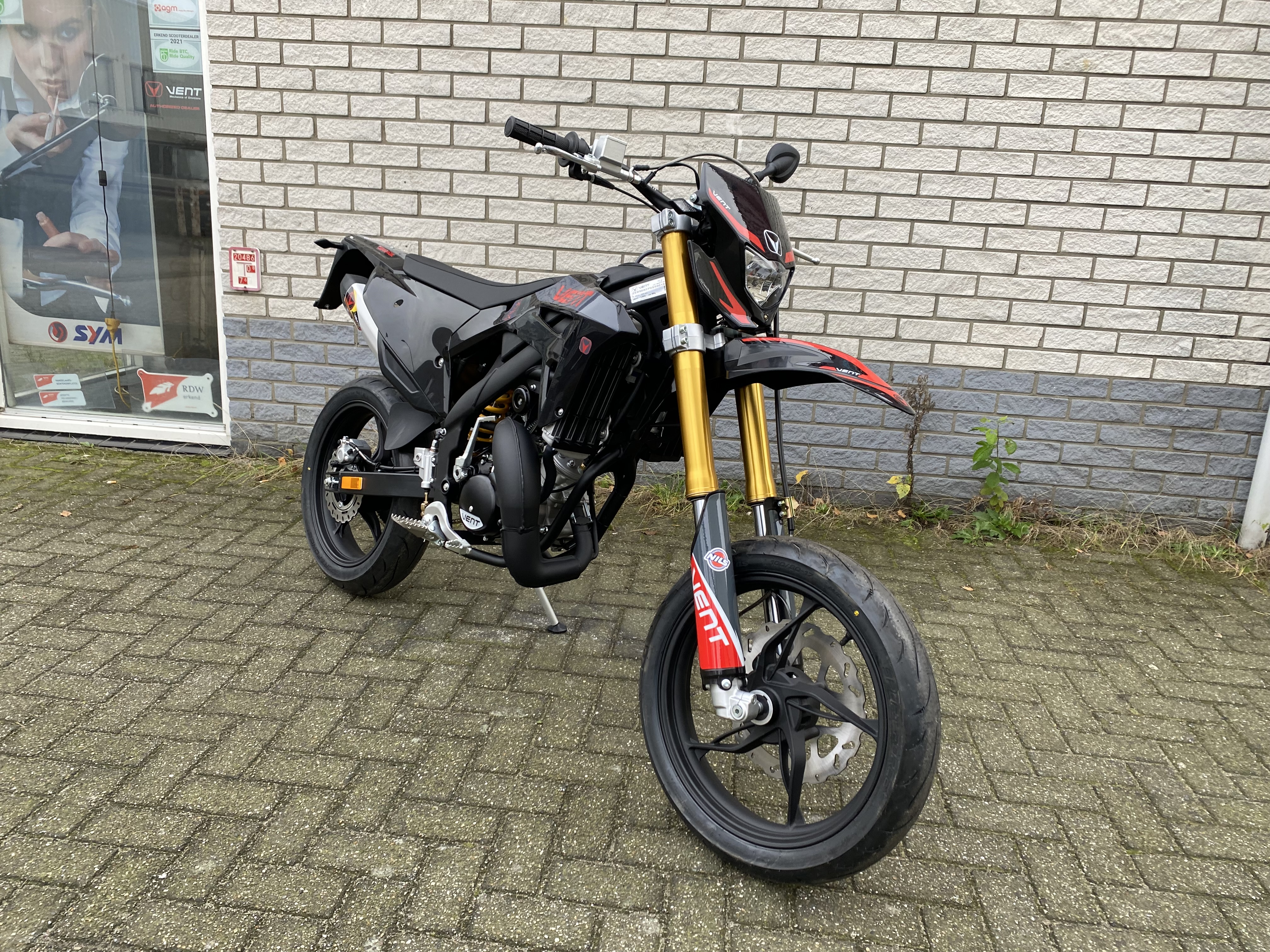 VENT bromfietsen, Italian Style, met AM-6 blok, EU topkwaliteit, met stalen of aluminium frame, Skate 38 mm, overige 41mm USD voorvork, RR met monolink(HM) , Skate spaakwielen, overige gespaakte wielen, LED clignoteurs en achterlicht, dubbele remzuigers voorremklauw, 2 persoons uitvoering, ook in verlaagde uitvoering leverbaar zonder meerprijs. Kleuren: zwart, wit, geel en rood. Uit voorraad leverbaar, ook onderdelen omgaand leverbaar Italiaans kampioen Enduro 50ccm: 2019-2020-2021-2022-2023. VENT was eerder bekend als HM (Honda Motor).