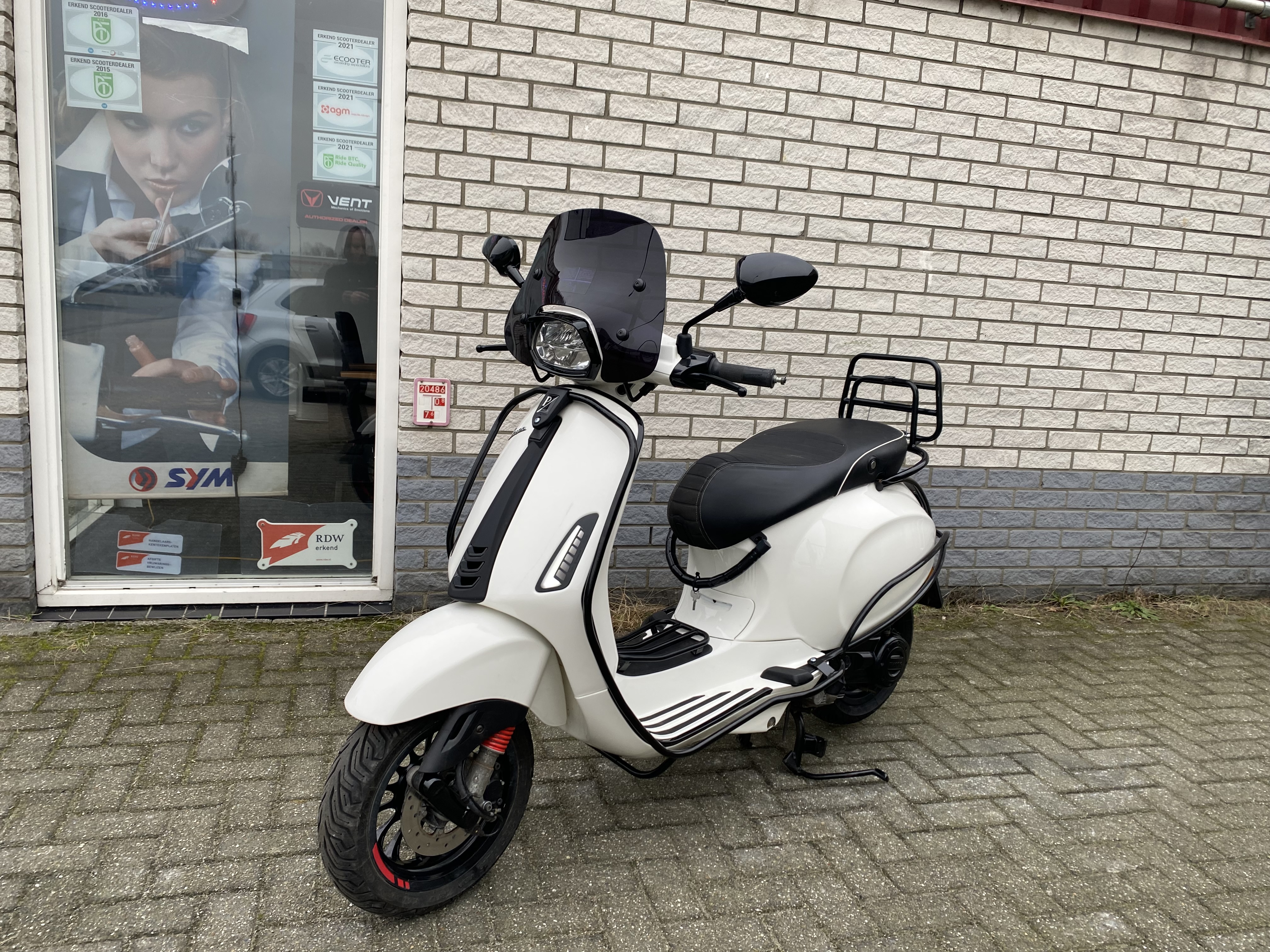 Scooterprof is een door de RDW erkend bedrijf!Kijk voor al onze scooters +- 150 stuks op WWW.SCOOTERPROF.NLDIKKE VESPA SPRINT S 45KM BROM BLACK ON WHITE BJ2023 11000KM 4-TAKT